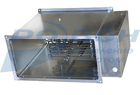 Электрические канальные воздухонагреватели (электрокалориферы) представляют собой корпус, в котором расположены трубчатые электронагреватели (ТЭН). Они создают электрическое сопротивление, которое преобразует энергию в тепло. Преимущества электрических воздухонагревателей состоят в следующем: они имеют небольшой перепад давления и они недороги в установке.